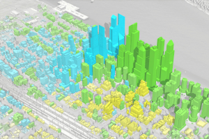For each of the three needs of residents, there is a specialized district in every town. To highlight buildings with corresponding zone color, use the land use data layer.