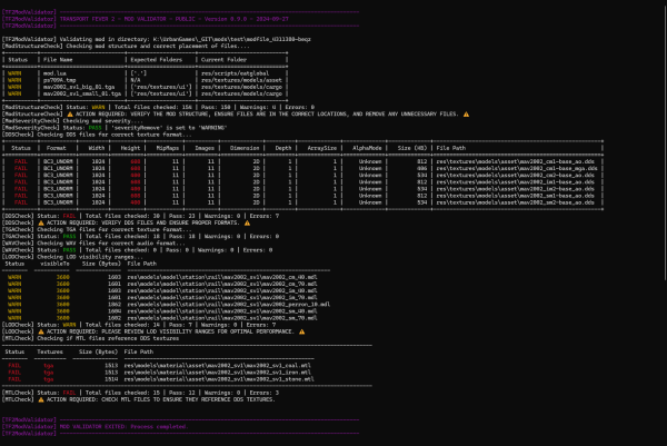 The mod validator tool was created in order to make the life of modders easier. This tool gives modders a quick overview of the status of a mod regarding most of the required changes for consoles and is able to show you some of the most common mistakes and flag them right away for faster fixing.