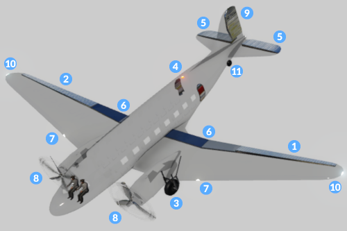 7 landingLight is a list of mesh ids which are visible during landing approach and on ground.